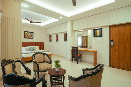 Built on the green edge, these Standard suites have been thoughtfully designed to blend ethnic art and architecture with modern sophistication. Cocooned within an abundance of nature, they offer a serene retreat where traditional elegance meets contemporary comfort. The bedrooms are a haven of tranquility, featuring large view windows that open to breathtaking vistas of the beautiful gardens or the serene courtyard. These expansive windows not only flood the rooms with natural light but also provide a seamless connection to the lush outdoor surroundings, creating a feeling of openness and harmony with nature. Each suite is adorned with unique ethnic artwork and handcrafted decor that reflect the rich cultural heritage of the region. Intricate carvings, vibrant textiles, and artisan-made furnishings create a warm and inviting atmosphere, while the modern amenities ensure a luxurious and comfortable stay.