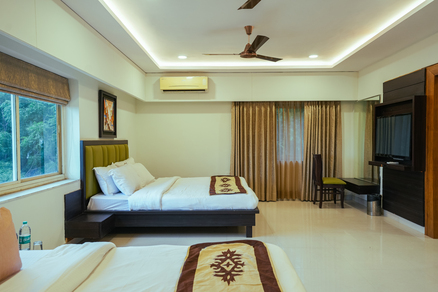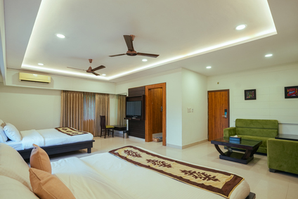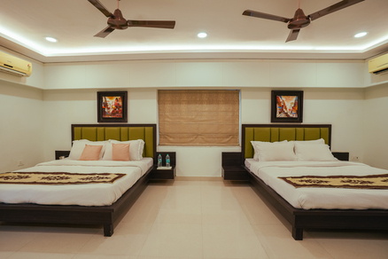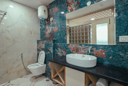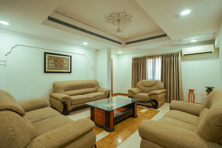 The Two-Bedroom Luxury Suite of Amaira Bagh exudes unparalleled elegance, combining opulent design with modern comforts. As you step inside, you are greeted by the gleam of polished marble floors, which set a sophisticated tone for the entire space. The suite is adorned with luxuriously comfortable furniture, featuring plush sofas and armchairs that invite you to relax and unwind. The living room is a masterpiece of style and comfort, meticulously decorated with tasteful accents and high-end finishes. Rich textures and a harmonious color palette create an atmosphere of refined luxury. Large windows allow natural light to flood the room, enhancing its airy and spacious feel while offering stunning views of the surrounding cityscape or ocean. Every detail in the Two-Bedroom Luxury Suite is designed to provide the utmost in comfort and elegance, from the ornate light fixtures to the custom-designed cabinetry.